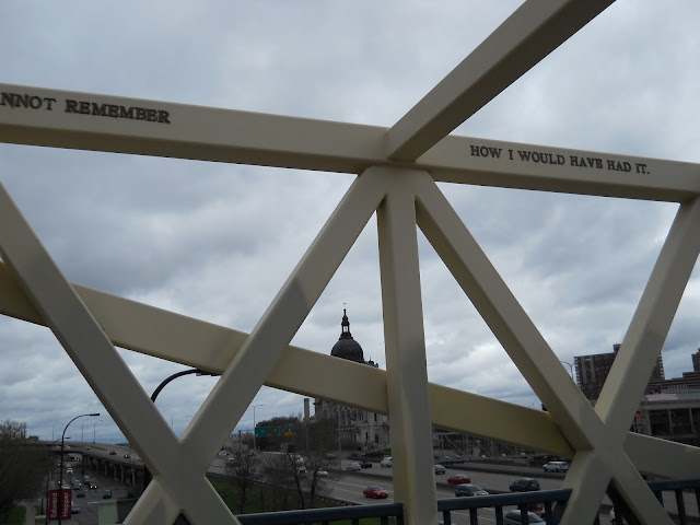 Đi qua cây cầu từ Vườn tượng Minneapolis về phía đông đến Loring Park, bạn có thể đọc bài thơ ở bên tay trái cây cầu. Bài thơ cũng được viết ở thành cầu phía ngược lại khi đi qua cầu theo một hướng khác;